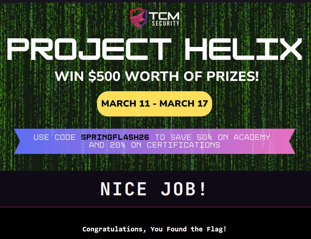 Write-up for the TCM's CTF Project Helix.